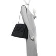 This is an authentic LOUIS VUITTON Soft Calfskin Lockme Tote MM in Black. This chic handbag is crafted of soft calfskin leather in black. The bag features a black LV turn-lock on the front pocket, rolled leather top handles, and an optional shoulder strap with matte black hardware. The top is open to a black microfiber interior with zipper and patched pockets.