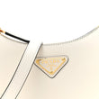 This is an authentic PRADA Soft Calfskin Arque Shoulder Bag in White. This is a chic Prada handbag, beautifully crafted from white calfskin leather. The shoulder bag features a zip-top that opens to a black lambskin leather interior with a patch pocket.