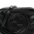 This is an authentic GUCCI Soft Patent Small Soho Disco Bag in Black. This stylish cross body bag is crafted of patent leather in black. The shoulder bag features an adjustable leather shoulder strap, a stitched interlocking GG logo and a leather tassel zipper pull. This opens to a black fabric interior with patch pockets.