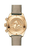 Unworn Omega Speedmaster CO‑AXIAL CHRONOMETER CHRONOGRAPH 324.63.38.50.02.004. 38 mm, Silver dial, Yellow gold case, Yellow gold bezel, 3330 calibre, Automatic Movement, 52 hour power reserve, Leather strap Foldover clasp. Water resistant to 100 m.