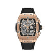 Unworn Hublot Spirit of Big Bang KING GOLD 642.OX.0180.RX. 42 mm, Sapphire dial, Satin-finished and Polished 18K King Gold case, Sapphire with Anti-reflective Treatment crystal, Satin-finished, Polished and Microblasted 18K King Gold with 6 H-shaped Titanium Screws bezel, HUB4700 calibre, Self-winding Skeleton Chronograph Movement, 50hours power reserve, Black Structured Lined Rubber Straps with 18K King Gold and Black PVD Titanium Deployant Buckle Clasp. Water resistant to 100 m.