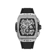 Unworn Hublot Spirit of Big Bang TITANIUM DIAMONDS 642.NX.0170.RX.1104. 42 mm, Sapphire dial, Satin-finished and Polished Titanium case, Sapphire with Anti-reflective Treatment crystal, Polished Titanium Set with 164 Diamonds totaling 0.90ct with 6 H-shaped Titanium Screws bezel, HUB4700 calibre, Self-winding Skeleton Chronograph Movement, 50hours power reserve, Black Structured Lined Rubber Straps with Titanium Deployant Buckle Clasp. Water resistant to 100 m.