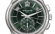 Luxury Sports watch Patek Philippe Complication Stainless Steel, Flyback Chronograph with Annual Calendar 42mm, and Reference 5905/1A-001. The model has a striking olive sunburst green rhythmic dial, and sportswear luminous 18k White Gold dauphine hands. The dial decorate large applied 18k White Gold indexes hour markers. On the outer edge of the dial there is a minute scale with luminous dots against each hour marker. The patented annual calendar is ingenious mechanism in three apertures arranged along an arc in the upper half of the dial. In its composition Date display at the 12 o'clock position, Day of the week display at the 10 o'clock position, Month display at the 2 o’clock position. At the 6 o'clock position there is sub-dial a small second hand and Arabic numerals after 10 seconds. Day/night indication displayed in apertures. Polished Stainless Steel Screw-down crown that with ribbed edge for comfortable grip and logo Patek Philippe and polished Stainless Steel chronograph buttons are on the right side of the case. The dial closed by a Scratch-resistant Sapphire Crystal and Scratch-resistant Sapphire Crystal case back. The watch is equipped fixed polished Stainless Steel by a bezel. The watch Patek Philippe Caliber CH 28‑520 QA 24H has manually wound mechanical movement, containing 37 Jewels, and power reserve min. 45 hours, max. 55 hours. This watch presented on integrated the sporty aesthetic bracelet is enhanced by contrasting polished and satin finishes with polished Stainless Steel Fold-over clasp. The water resistance is up to 30m/100ft (3 ATM).