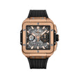 Unworn Hublot Square Bang UNICO KING GOLD 821.OX.0180.RX. 42 mm, Sapphire Crystal dial, Satin-finished and Polished 18K King Gold case, Sapphire with Anti-reflective Treatment crystal, Satin-finished and Polished 18K King Gold with 6 H-shaped Titanium Screws bezel, HUB1280 UNICO calibre, Manufacture Self-winding Chronograph Flyback Movement with Column Wheel, 72 Hours power reserve, Black Structured Rubber Straps with 18K King Gold and Black-plated Titanium Deployant Buckle Clasp. Water resistant to 100 m.