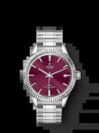 Unworn watch Tudor Style, polished and satin finish Stainless Steel, 34mm, and Ref # M12310-0015. Classic and elegance are the essential hallmarks of Tudor Style watches. A chic women's watch with a hint of retro, harmoniously combines sensuality and performance. They are perfect for all occasions. The delicate Burgundy sunray dial treatment is lacquered for added depth. Three-dimensional rods with beautiful beveling on four sides, including the famous double index at 12 and 6 o'clock, give the watch a brilliant glow. A distinctive feature of the aesthetics of the watch are dauphine-style shape hands. Bright and stylish, this watch has a minute-second scale around the outer perimeter of the dial and a date window at the 3 o'clock position, which enhances its readability. Complementing all this charm is the cone-shaped screw-down Stainless Steel crown, bearing the TUDOR logo, for a fluid design. The dial closed by a Scratch-resistant Sapphire Crystal. The watch mechanism is sewn up by a solid Stainless Steel case back. An elegant feature of the model is the fixed fluted Stainless Steel bezel. The model is equipped with a manufacture Tudor self-winding mechanical movement Calibre T601, contains 25/26 jewels and has an approximate power reserve approximately of 38 hours. This bright timepiece is presented on Stainless Steel bracelet with five links (three wide and two narrow), refined with an alternation of polished and satin finishes. The folding clasp, made using our own unique Tudor technologies, guarantees maximum comfort on the wrist. Water resistant up to 100m/330ft (10 ATM).