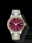 Unworn watch Tudor Style, polished and satin finish Stainless Steel and Yellow Gold, 34mm, Ref# M12303-0013. Classic and elegance are the essential hallmarks of Tudor Style watches. A chic women's watch with a hint of retro, harmoniously combines sensuality and performance. They are perfect for all occasions. The delicate Burgundy dial with a special sunbeam treatment is lacquered for added depth. It is adorned with hour markers inspired by 1950s watches. The 12 and 6 o'clock position is highlighted by the famous double Yellow Gold indexes, which are meticulously finished, which emphasizes the modernity of the model. The rest of the hour markers are three-dimensional Yellow Gold sticks with a beautiful chamfer on four sides, giving the watch a bright glow. A distinctive feature of the aesthetics of the watch are dauphine-style shape Yellow Gold hands. Bright and stylish, this watch has a minute-second scale around the outer perimeter of the dial and a date window at the 3 o'clock position, which enhances its readability. Complementing all this charm is the cone-shaped screw-down stainless steel crown, bearing the TUDOR logo, for a fluid design. The dial closed by a Scratch-resistant Sapphire Crystal. The watch mechanism is sewn up by a solid Stainless Steel case back. An elegant feature of the model is the fixed double Yellow Gold and Stainless Steel bezel. The model is equipped with a manufacture Tudor self-winding mechanical movement Calibre T601, contains 25/26 jewels and has an approximate power reserve approximately of 38 hours. This bright timepiece is presented on Stainless Steel and Yellow Gold bracelet with five links (three wide Stainless Steel links and two narrow Yellow Gold inserts between them), refined with an alternation of polished and satin finishes. The folding clasp, made using our own unique Tudor technologies, guarantees maximum comfort on the wrist. Water resistant up to 100m/330ft (10 ATM).