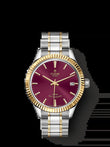 Unworn watch Tudor Style, polished and satin finish Stainless Steel, 34mm, and Ref # M12313-0013. Classic and elegance are the essential hallmarks of Tudor Style watches. A chic women's watch with a hint of retro, harmoniously combines sensuality and performance. They are perfect for all occasions. The delicate Burgundy sunray dial treatment is lacquered for added depth. Three-dimensional rods with beautiful beveling on four sides of Yellow Gold, including the famous double index at 12 and 6 o'clock, give the watch a brilliant glow. A distinctive feature of the aesthetics of the watch are Yellow Gold dauphine-style shape hands. Bright and stylish, this watch has a minute-second scale around the outer perimeter of the dial and a date window at the 3 o'clock position, which enhances its readability. Complementing all this charm is the cone-shaped screw-down Stainless Steel crown, bearing the TUDOR logo, for a fluid design. The dial closed by a Scratch-resistant Sapphire Crystal. The watch mechanism is sewn up by a solid Stainless Steel case back. An elegant feature of the model is the fixed fluted Yellow Gold bezel. The model is equipped with a manufacture Tudor self-winding mechanical movement Calibre T601, contains 25/26 jewels and has an approximate power reserve approximately of 38 hours. This bright timepiece is presented on Stainless Steel and Yellow Gold bracelet with five links (three wide Stainless Steel links and two narrow Yellow Gold inserts between them), refined with an alternation of polished and satin finishes. The folding clasp, made using our own unique Tudor technologies, guarantees maximum comfort on the wrist. Water resistant up to 100m/330ft (10 ATM).