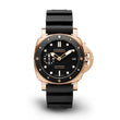 Unworn Panerai Submersible Goldtech™ Ref# PAM01164. 42 mm, Black dial, Goldtech™ case, Goldtech™ with ceramic anti-clockwise rotating bezel with graduated scale bezel, P.900 calibre, Automatic mechanical Movement, 23 jewels, 3 days power reserve, Caoutchouc Black, - Stitching, 22.0/20.0 Standard size straps. Water resistant to 300 m.