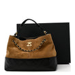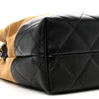 Suede Calfskin Shiny Lambskin Quilted Large Shopping Bag Beige Black