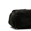 This is an authentic CHANEL Suede CC Drawstring Backpack in Black. This classic backpack circa 1994-1996 is finely crafted of luxurious suede leather in black. The bag features a large stitched CC on the front, long suede shoulder straps, and a suede leather drawstring with gold hardware. This top flap opens to a black fabric interior with zipper pockets.