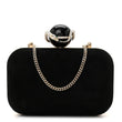Suede Crystal Snake Cloud Clutch Black