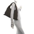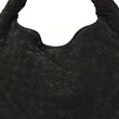 This is an authentic BOTTEGA VENETA Suede Intrecciato Small Hop in Fondant. This is a beautiful hobo, crafted woven suede leather in dark brown, with an incorporated looping shoulder strap. The top opens with a magnet to a matching smooth leather interior with a zipper pocket.