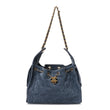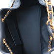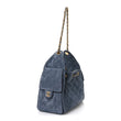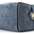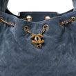 This is an authentic CHANEL Suede Quilted Small Chanel 25 Handbag in Blue. This slouchy shoulder bag is crafted with luxurious blue quilted suede leather. It features two side pockets with an aged gold CC logo, a leather threaded aged gold chain link shoulder strap, and drawstring closure with a CC adjuster. The bag opens to a fabric interior with a leather patch pocket.