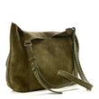 This is an authentic THE ROW Suede Sidekick in Dark Olive. This crossbody is crafted of khaki suede leather. The bag features a suede strap handle a rear patch pocket and silver hardware. The front flap opens to a matching leather interior with zipper and patch pockets.
