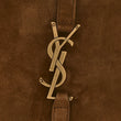 This is an authentic SAINT LAURENT Suede Small Le 5 A 7 Soft Hobo in Orange Caramel. This hobo is crafted of rich brown suede with an incorporated adjustable shoulder strap and a crossover strap with a gold YSL logo to latch the bag closed. The top of the bag is open to a matching suede and smooth leather interior with a zipper pocket and patch pocket.