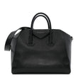 This is an authentic GIVENCHY Sugar Goatskin Medium Antigona in Black. This elegant tote is crafted of luxuriously textured goatskin leather in black. The handbag features rolled leather top handles, a leather shoulder strap and signature structured expansive sides. The top opens with a polished silver zipper to a black fabric interior with zipper and patch pockets.