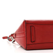 This is an authentic GIVENCHY Sugar Goatskin Mini Antigona in Red. This elegant handbag is crafted of grained goatskin leather in red. It features rolled leather top handles, an optional adjustable shoulder strap, and polished silver hardware. The top zipper opens to a beige fabric interior with a zipper and patch pockets.