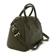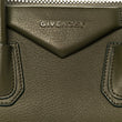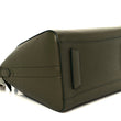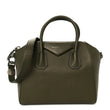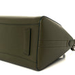 This is an authentic GIVENCHY Sugar Goatskin Small Antigona in Dark Khaki. This stylish tote is crafted of richly textured goatskin leather in dark khaki green. The bag features sturdy rolled leather top handles and an optional shoulder strap with silver hardware. The top zipper opens to a black fabric interior with zipper and patch pockets.