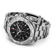 Introducing the Breitling Super Avenger B01 Chronograph 46—a commanding timepiece that masterfully combines robust functionality with sophisticated design, tailored for aviation enthusiasts and professionals alike. This model boasts a substantial 46mm titanium case, offering exceptional durability while maintaining a lightweight profile for optimal comfort. The striking black dial enhances its distinctive aesthetic, complemented by a matching titanium bracelet that ensures both style and resilience. At its heart lies the in-house Breitling Manufacture Caliber 01, a self-winding mechanical movement renowned for its precision and reliability. With an impressive water resistance of up to 300 meters (1,000 feet), the Super Avenger B01 Chronograph 46 is engineered to perform seamlessly across diverse environments, from high-altitude flights to deep-sea explorations.