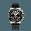 Unworn watch Breitling Super Chronomat B01 44, Reference EB0136251M1S1: the pinnacle of precision, durability and style in the world of luxury watches. Their impressive design attracts attention. The durable yet super-lightweight 44mm titanium case, with a matte finish and polished beveled corners, sits beautifully on the wrist, exuding confidence and strength. The anthracite dial with a vertical satin finish and black subdials features the Silver Breitling “B” emblem at 12 o’clock. Combining rugged masculinity with sophisticated elegance, the watch features applied, polished, bold index hour markers with luminous fill. Together with the polished large luminous hands, they ensure optimal legibility in all lighting conditions. A tachymeter scale runs along the black flange of the dial, and minute intervals are finely printed along its outer perimeter. The functionality of this model is undoubtedly enhanced by the presence of a date indicator located at the 6 o'clock position and a small seconds hand at the 9 o'clock position. Moreover, the presence of a chronograph is testament to Breitling's ongoing commitment to innovation and excellence in watchmaking. It includes a column wheel mechanism; a thin blue central seconds hand of a special design, the tip of which has a luminescent filling and the manufacturer’s logo “B” on the other side; 30-minute counter sub-dial located at 3 o'clock; 12-hour counter sub-dial at 6 o'clock. The dial closed by a Scratch-resistant Sapphire Crystal with glare-proofed both sides. The transparent case back is made of sapphire glass, which allows you to see the fascinating work of the watch mechanism. The watch is operated using a polished titanium crown, which has a specially shaped black ceramic plate for comfortable grip and the Breitling logo at the end. On the right side of the case, there are also cylindrical titanium chronograph pushers with black ceramic inserts. The watch is equipped polished titanium unidirectional-ratcheted rotating bezel ring with polished black ceramic insert featuring raises in position 15, 30, 45 minute and large luminous fill dot at the origin. The Model comes with Breitling Caliber B01 contains 47 Jewels and has an approximate power reserve of 70 hours. The watch has a black rubber strap that fits comfortably on the wrist and is secured with a Titanium folding clasp. The water resistance is up to 200m/660ft.