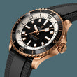 Unworn Breitling Watch Superocean Automatic 42, 18k Red Gold case, Reference R17375211B1S1: a fusion of style and functionality, designed to accompany you on every underwater adventure and beyond. Crafted with precision engineering and unmistakable Breitling flair, this timepiece is not just a watch—it's a companion for the explorers of the deep and the adventurers of life. The 42mm case is made from durable brushed and polished finished 18k Red Gold and provides the perfect balance of appearance and comfort on the wrist. Sporty, fresh and vibrant, this model features a matte Black dial adorned with an 18k Red Gold “B” logo at 12 o'clock and large 18k Red Gold applied luminous hour markers. It features an impressive White flange with a clearly readable minute scale, on which every 10 minutes are marked with large black Arabic numerals. The dial is decorated with polished 18k Red Gold hour and minute hands with luminous fill. An elegant 18k Red Gold central seconds hand with a luminous circle and a tip harmoniously complements them. The watch has a screw-locked screwing down crown of polished 18k Red Gold with two spacers. Its ribbed edge provides a comfortable grip. The Breitling logo is applied to the end of the crown. The dial closed by a convex sapphire crystal, glare-proofed both sides and solid 18k Red Gold case back. Unidirectional 18k Red Gold ratcheting bezel with ribbed edge, adorned with a polished Black ceramic ring with luminous starting point and dive scale displays precise dive times. Breitling Caliber 17 contains 26 Jewels and has an approximate power reserve of 38 hours. The model is presented on Breitling's iconic and comfortable a Black Rubber strap, which fastens on Stainless Steel Folding Clasp. The water resistance is up to 300m (1000ft).