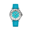 Introducing Unworn Breitling Ladies Watch Superocean Automatic 36, Stainless steel case, Reference A17377211C1S1: a fusion of style and functionality, designed to accompany you on every underwater adventure and beyond. Crafted with precision engineering and unmistakable Breitling flair, this timepiece is not just a watch—it's a companion for the explorers of the deep and the adventurers of life. The 36mm case is made from durable brushed and polished finished Stainless steel and provides the perfect balance of appearance and comfort on the wrist. Sporty, fresh and vibrant, this model features a matte Turquoise main dial which is decorated a Silver-tone “B” logo at 12 o'clock and large silver luminous hour markers. It features an impressive Silver flange with a clearly readable minute scale, on which every 10 minutes are marked with large black Arabic numerals. The dial is decorated with polished Silver-tone hour and minute hands with luminous fill. An elegant Silver-tone central seconds hand with a luminous circle and a tip harmoniously complements them. The watch has a screw-locked screwing down crown of polished Stainless steel with two spacers. Its ribbed edge provides a comfortable grip. The Breitling logo is applied to the end of the crown. The dial closed by a convex sapphire crystal, glare-proofed both sides and solid Stainless steel case back. Unidirectional Stainless steel ratcheting bezel with ribbed edge, adorned with a polished White ceramic ring with luminous starting point and dive scale displays precise dive times. Breitling Caliber 17 contains 26 Jewels and has an approximate power reserve of 38 hours. The model is presented on Breitling's iconic and comfortable a Turquoise Straight Rubber strap, which fastens on Stainless Steel Push Button Folding Clasp. The water resistance is up to 300m (1000ft).