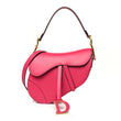 This is an authentic CHRISTIAN DIOR Supple Calfskin Saddle Bag With Strap in Passion Pink. This bag is crafted of smooth calfskin in pink. It features the saddle bag shape, a leather handle with a polished brass and pink leather "C" and "D" anchors on either end of the handle, an optional shoulder strap, and a prominent hanging Dior "D" charm. The flap opens to a matching microfiber interior.