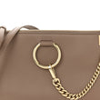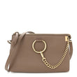 This is an authentic CHLOE Supple Lambskin Small Faye Soft Zippered Shoulder Bag in Neutral. This stylish shoulder bag is crafted of fine smooth lambskin leather in dark beige. This bag features an adjustable leather shoulder strap, and polished gold hardware including a decorative ring attached to a clasp and chain. The top zipper opens to a beige fabric interior with a leather flat pocket.