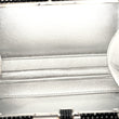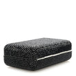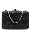 This is an authentic JUDITH LEIBER Swarovski Crystal Minaudiere Clutch in Black. This stunning evening clutch is entirely encrusted in black crystals. The bag features a silver chain strap and a top press lock that opens to a silver leather interior.