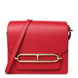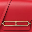 This is an authentic HERMES Swift Mini Sac in Roulis in Rouge Piment. This shoulder bag is beautifully crafted of red smooth calfskin leather. It features a long leather shoulder strap with gold-plated links, accordion sides, and a full flap that seals with a stylized crossbar. The flap opens to a partitioned red leather interior.