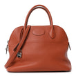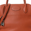 This is an authentic HERMES Taurillon Clemence Bolide 31 in Terre Battue. This stylish tote is crafted of burnt orange soft clemence calfskin leather and features rolled leather top handles, an optional leather shoulder strap, and polished palladium clasps. The top zipper opens to a spacious black leather interior with a patch pocket.