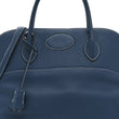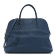 This is an authentic HERMES Taurillon Clemence Bolide 35 in Bleu Agate. This tote is crafted of grained calfskin leather in blue. It features rolled leather top handles, and an optional leather shoulder strap with palladium silver clasps. The top zipper opens to a leather interior with a flat pocket.