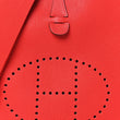 This is an authentic HERMES Taurillon Clemence Evelyne III PM in Rouge De Coeur. This stylish messenger bag is crafted of grained calfskin leather in red. The shoulder bag features an adjustable canvas shoulder strap, an exterior pocket, palladium plated hardware and a perforated Hermes H oval on the front of the bag. The top of the bag opens with a cross over strap to a red suede interior.