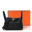 This is an authentic HERMES Taurillon Clemence Mini Lindy 20 in Black. This chic tote is crafted of luxurious Taurillon Clemence calfskin leather in black. This stylish bag features rolled leather top handles on either side, a leather crossbody strap and a zippered top flap with a gold plated turn-lock closure. This opens to a smooth black leather interior with patch pockets.