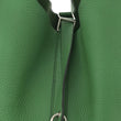 This is an authentic HERMES Taurillon Clemence Picotin Lock 26 GM in Bamboo. This stunning tote is crafted of luxuriously soft clemence calfskin leather in green. The handbag features a unique one-piece reinforced design with leather top handles with a clip and that is can be secured by a padlock at the other end. The top strap opens to a spacious green suede leather interior. This is an excellent tote for everyday wear, both practical and chic, from Hermes!
