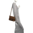 This is an authentic HERMES Taurillon Clemence Verso Halzan 25 in Alezan and Sesame This stylish shoulder bag is crafted of grained calfskin leather in brown. The bag features top handles, an optional, adjustable leather shoulder strap, palladium hardware and four external patch pockets. The front flap opens to a light brown compact smooth leather interior with a flat pocket.
