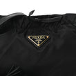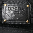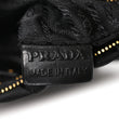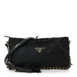 This is an authentic PRADA Tessuto Nylon Whipstitch Grommet Tassel Shoulder Bag in Black. This wallet on chain is crafted of perforated black nylon fabric with gold-tone rivets adorning the front and back. The bag features a leather shoulder strap and a triangle symbol. The top opens to a black fabric interior with a zipper compartment.