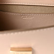 This is an authentic GIVENCHY Textured Calfskin Micro Pandora Box Clutch in Nude Pink. This chic mini clutch bag is finely crafted of textured calfskin leather in pale pink. The bag features a gold chain-link shoulder strap and polished gold hardware. The flap opens to a beige suede interior with a card slot.