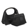 MARC JACOBS THE MINI SACK BLACK BLACK LEATHER GRAINED TEXTURE FRONT EMBOSSED LOGO BACK LOGO PATCH SINGLE TOP HANDLE MAGNETIC CLOSURE INTERNAL LOGO PLAQUE INTERNAL ZIP POCKET DIVIDED COMPARTMENT LEATHER TOTE BAGS BAGS WOMEN