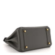 This is an authentic HERMES Togo Birkin 25 in Gris Meyer. This stylish tote is crafted of luxurious leather in grey. The bag features rolled leather top handles with a crossover flap and a strap closure with polished gold plated hardware including a turn lock for a padlock. This bag opens to a spacious matte goatskin leather interior with zipper and patch pockets.