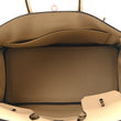 This is an authentic HERMES Togo Birkin 25 in Trench. This classic handbag is beautifully crafted of togo calfskin leather in light tan. The bag features rolled leather top handles, a short front flap and strap closure and palladium hardware including a turn lock and keys in the hanging clochette. This opens to a goatskin leather interior with zipper and patch pockets.