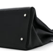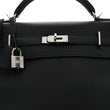 This is the authentic HERMES Togo Maxi Kelly Retourne 42 in Black. This chic handbag tote is crafted of luxurious togo calfskin leather in black. The bag features a reinforced leather strap top handle and optional shoulder strap with palladium plated hardware including links and a front flap secured with a strap as well as a signature Kelly turn lock. This bag includes a padlock and key with a hanging leather clochette. The flap opens to a matching leather interior with zipper and patch pockets.