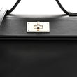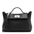 This is an authentic HERMES Togo Swift 24/24 29 in Black. This handbag is crafted of richly textured calfskin leather in black. The bag features a reinforced leather top handle, an optional leather shoulder strap, a rear pocket, and palladium hardware. The flap opens to a goatskin leather interior with a zipper pocket.