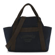 This is an authentic HERMES Toile Sac De Pansage Groom in Bleu Navy and Feu. This luxury grooming bag is crafted of durable canvas in dark blue. The bag features exterior pockets, brown canvas handles, an optional brown shoulder strap and palladium silver hardware. The top opens to a central large orange removable insert with zipper and patch pockets.