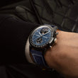 Unworn watch the Breitling Top Time B21 Shelby Cobra, Ceramic, 44mm, Ref# SB21251A1C1X1: a statement of sophistication and precision engineering. Crafted with the utmost attention to detail, this timepiece combines classic design elements with modern functionality to create a truly timeless accessory. With its sleek black ceramic case and exquisite Blue dial, the watch is reminiscent of the steering wheel of a classic car.The contrasting polished silver hour and minute hands and hour markers glow and provide excellent legibility even in poor lighting conditions. They are harmoniously complemented by an elegant central second’s hand. A chronograph with a column wheel and a tourbillon, first used in the Top Time collection, adds a touch of sportiness. The rotating tourbillon, located at 12 o'clock, holds important parts such as the balance wheel, spring and escapement in a rotating cage.The brutal black sub-dial is attached with large screws at the 6 o'clock position, maintaining the overall aesthetics of the model. A tachymeter scale on the black outer edge of the dial also supports her. The watch is adjusted using a screwless titanium crown with two spacers and titanium chronograph pushers. On the crown printed Logo Breitling. The dial closed by a Scratch resistant sapphire crystal. The transparent sapphire crystal case back reveals the mesmerizing operation of the movement. Adds visual interest without overwhelming the design and black ceramic fixed bezel. The Watch comes with Breitling B21 (Manufacture La Joux-Perret) automatic chronograph movement, contains 30 jewels, and has an approximate power reserve of 55 hours. The watch presented on a Blue calfskin leather strap with Titanium Folding clasp. The water resistance is up to 100m/330ft.
