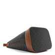 This is an authentic CELINE Triomphe Canvas Calfskin Medium Bucket Bag in Tan. This ultra chic shoulder bag is crafted of brown coated canvas, with brown leather trim. The bag features an adjustable leather shoulder strap with gold hardware, and the top is open to a brown fabric interior.
