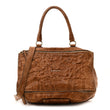This is an authentic GIVENCHY Tumbled Sheepskin Large Pepe Pandora Messenger in Brown. This unique messenger bag is finely crafted of soft distressed sheepskin leather in brown. This bag features a top handle, optional leather shoulder strap with gold hardware, and a small frontal pocket with magnetic closure. The two top zippers opens to spacious black fabric interior with patch pockets.