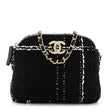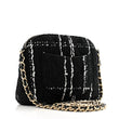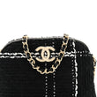 This is an authentic CHANEL Tweed Quilted Mini Clutch With Chain in Black and White. This chic shoulder bag is crafted of tweed in black and white. This handbag features leather threaded chain-link top handles, a light gold chain leather threaded shoulder strap, and a Chanel CC logo on the front. The zipper opens to a black fabric interior with a patch pocket.