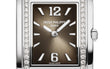 New Patek Philippe Twenty~4 Quartz Diamond Ladies luxury watch, 25.1 x 30 mm, Stainless Steel with 36 diamonds (~0.42 ct), Ref. 4910/1200A-010. This prestigious wristwatch is the epitome of timeless feminine elegance. The combination of classic and modern has made this watch the perfect companion for active professional women who want to stand out and express themselves. The sophisticated design of this stunning watch complements both business dresses and evening attire. The main attraction of the model is a gray dial with black graduations, sunbeams decorated. Its beauty is emphasized large by 18k White Gold trapezoid-shaped markers and well-read even in the dark 18k White Gold Arabic numerals 6 and 12 with luminescent coating. Hands in the form of wands made of 18k White Gold with a luminescent coating also look luxurious. The polished Stainless Steel crown, the Patek Philippe logo the Calatrava Cross trademark, completes the perfect image. The dial is covered with a slightly curved scratch-resistant sapphire crystal, which emphasizes the curves of the case. The solid case back is made of Stainless Steel. The elegant highlight of the model is a slightly curved case with stunning flawless Wesselton diamonds arranged vertically along the case on a fixed Stainless Steel bezel, 18 on each side. The model is equipped with a Patek Philippe Quartz movement Caliber E 15 with silver oxide battery 1.55 V and a service life of 3 years. This fabulously beautiful timepiece is presented on a solid Stainless Steel bracelet with wide, gently curved central links framed by narrow double-tiered links. The link steps follow the steps of the lugs, giving the watch a more barrel-shaped silhouette. The same applies to the module between the lugs, which follows the shape of the central link. It fastens with a Patek Philippe patented folding clasp in polished Stainless Steel engraved and the Calatrava cross. Water resistant up to 30m/99ft (3 ATM).