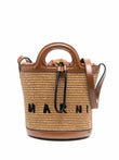 TWO-TONE LEATHER and RAFFIA TROPICALIA BUCKET BAG